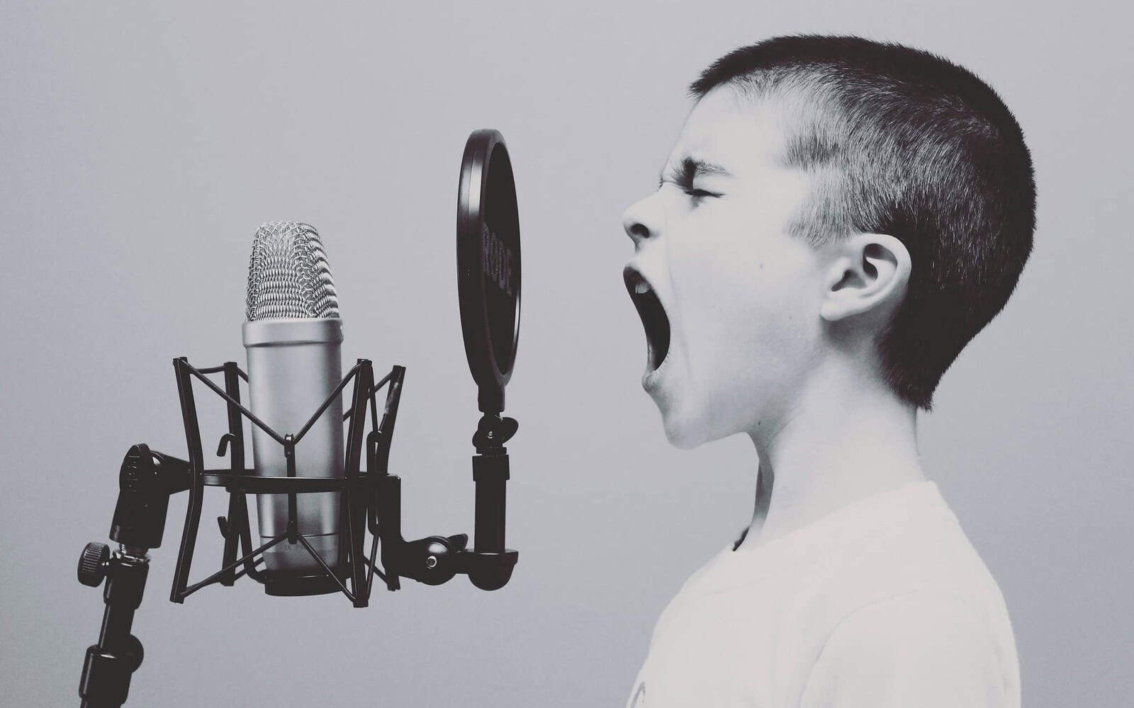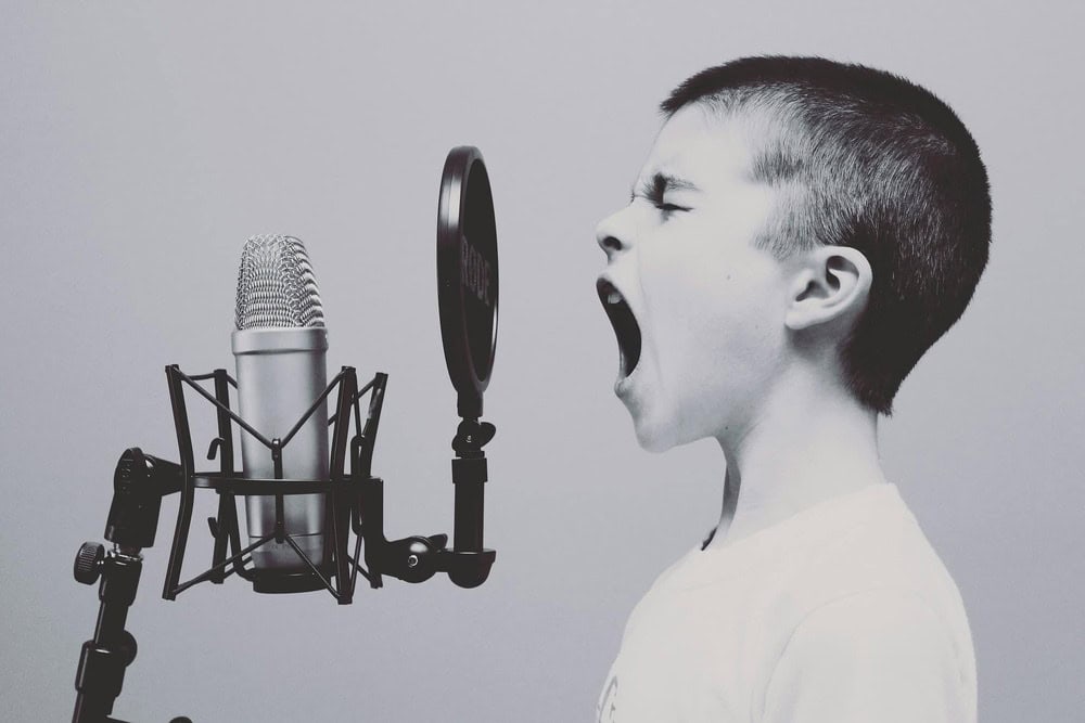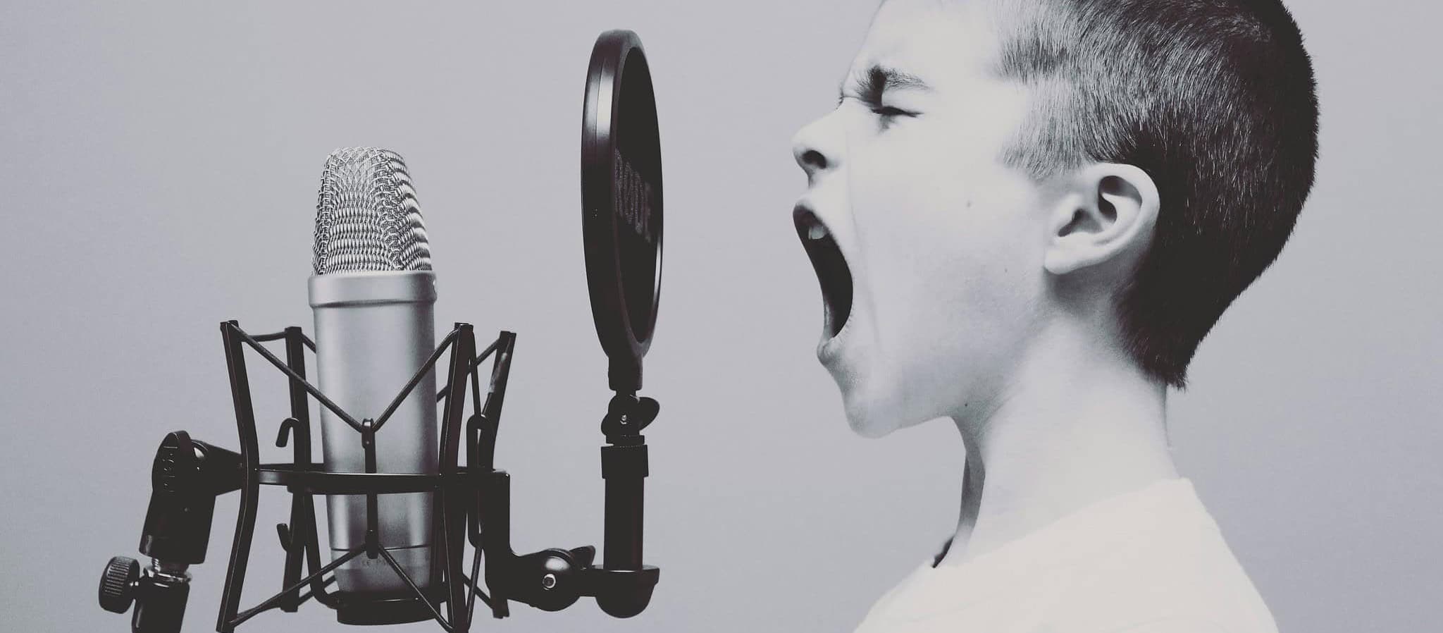boy singing into microphone